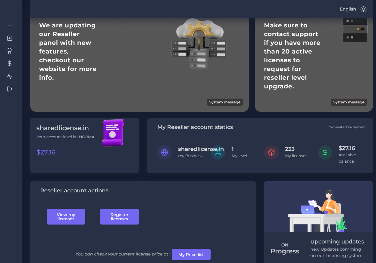 Register in sharedlicense.in, Get your reseller account from here, once you got your info (API access and WHMCS module access) install our WHMCS Plugin and start selling!